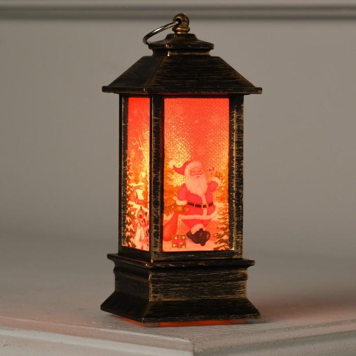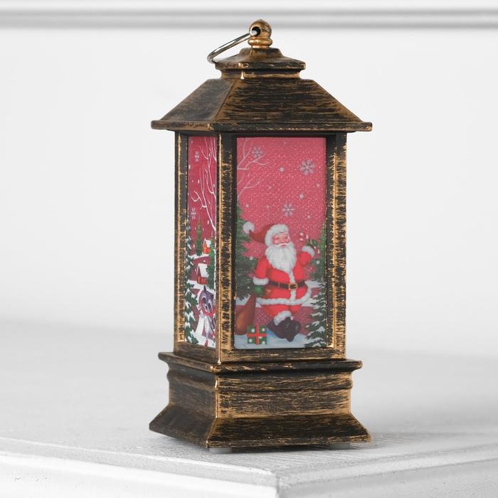 Фигура светодиодная "Фонарь цвет бронза, Дед мороз", бегущий диод, 13х5.5х5.5 см, бат.3хLR44